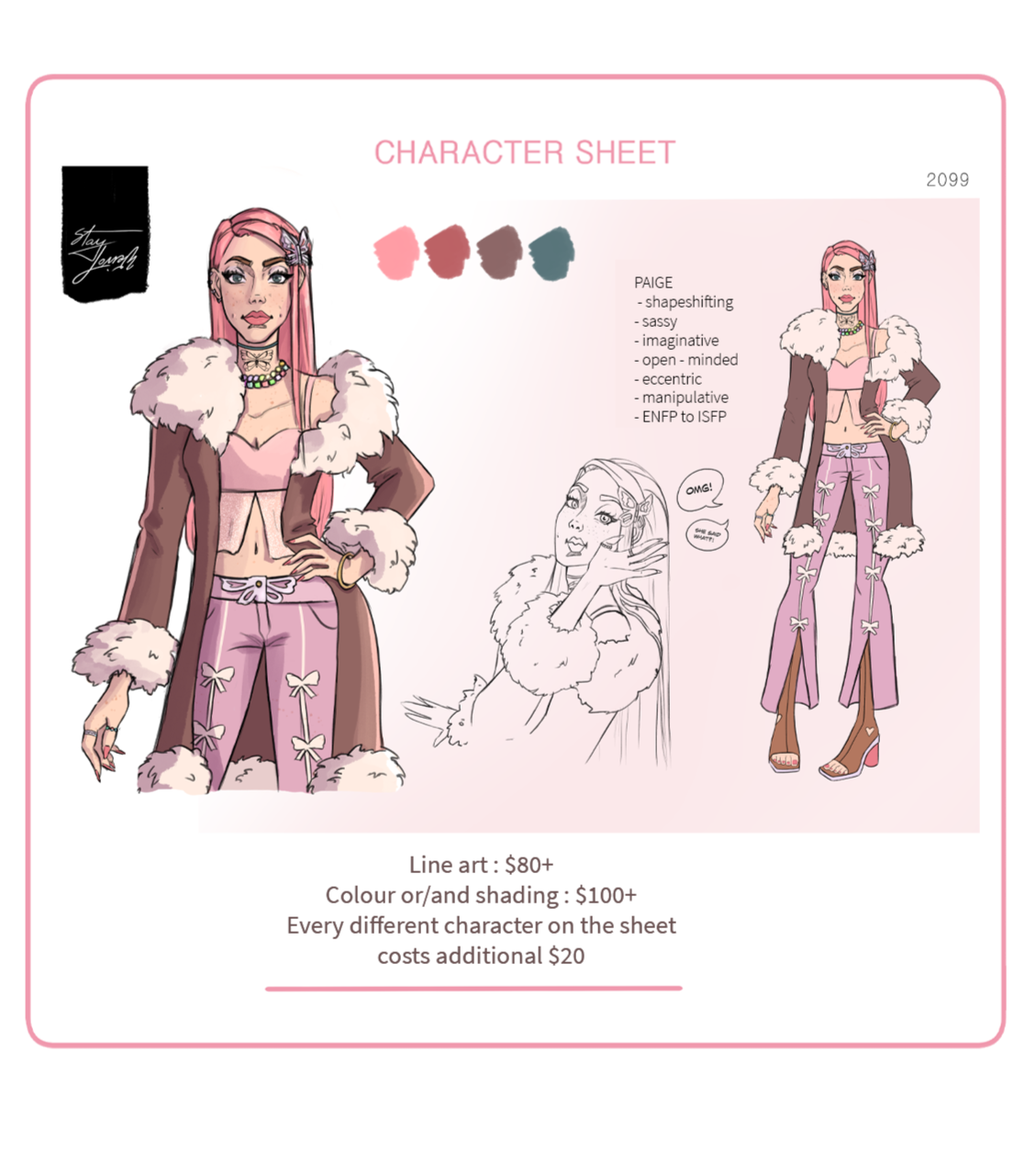 • Reposting a commission online if they visibly credit the artist as ‘@SWeird25 (on Twitter)’ or by linking to the artist’s webpage at https://stayweird25homepage.carrd.co